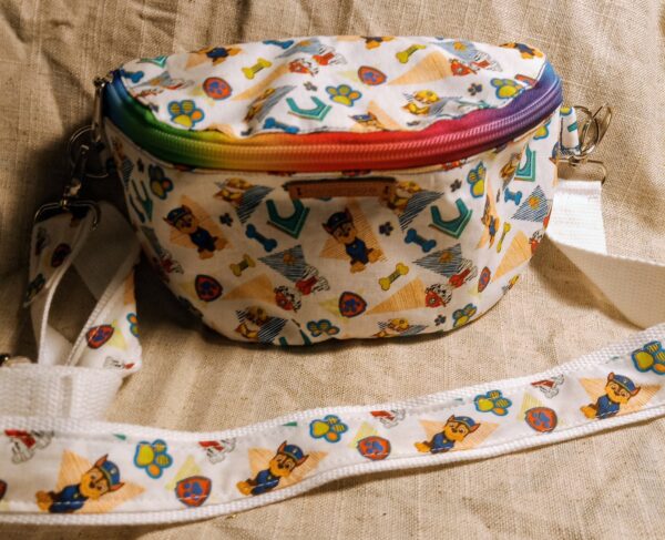 Sac banane enfant avec motif Pat’Patrouille, équipé d’un zip multicolore et d’une doublure en tissu recyclé. Un accessoire fun et pratique, parfait pour les petits fans de la série.